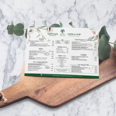 Делаем настольные варианты, которые устойчиво стоят, не бликуют слишком сильно и легко протираются. Можно добавить логотип, номер стола, время брони или QR-код для связи с администратором.